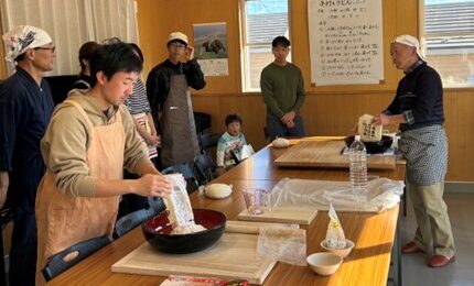 クラインガルテンの湯沢エリアガルテナーでもあり、蕎麦・うどん打ち名人である方を講師に、 生徒のガルテナーさん17名が「手打ちうどん」の作り方を学びました。