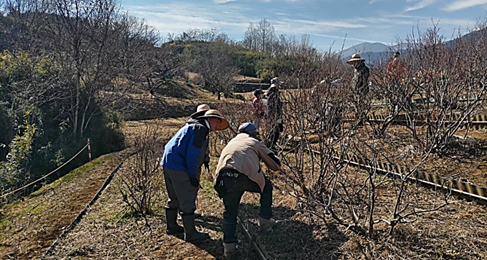 2/14㈯、クラインガルテン内ブルーベリー畑にて剪定講習会を実施しました。 ガルテナーさん30名が参加し、お世話役の指導のもと、自分の樹の剪定を行いました。 天気も良好!